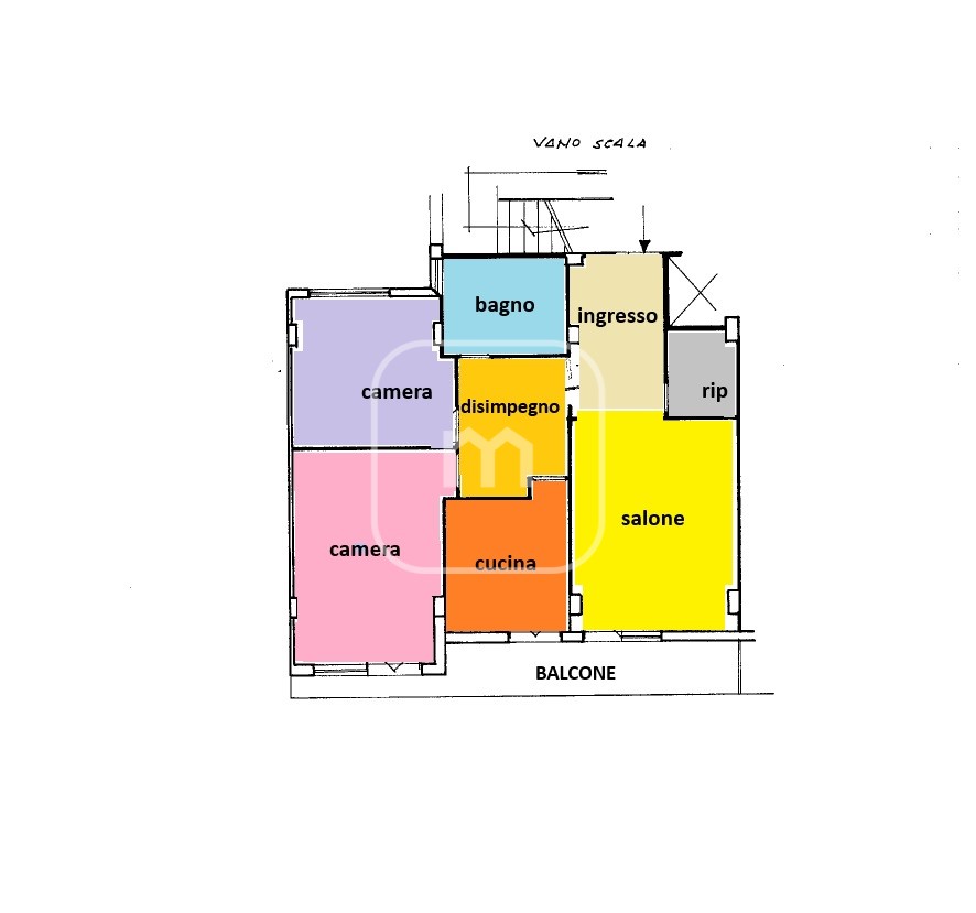 Gli spazi interni sono ampi e ben distribuiti, con uno spazioso ingresso, un comodo salone a vista, con finestra e porta finestra per accesso diretto al balcone, seguendo troveremo la cucina abitabile anch'essa con accesso diretto al balcone, un bagno finestrato con doccia, un comodo ripostiglio, un balcone perimetrale, mentre la zona notte comprende due camere da letto due ampie camere,