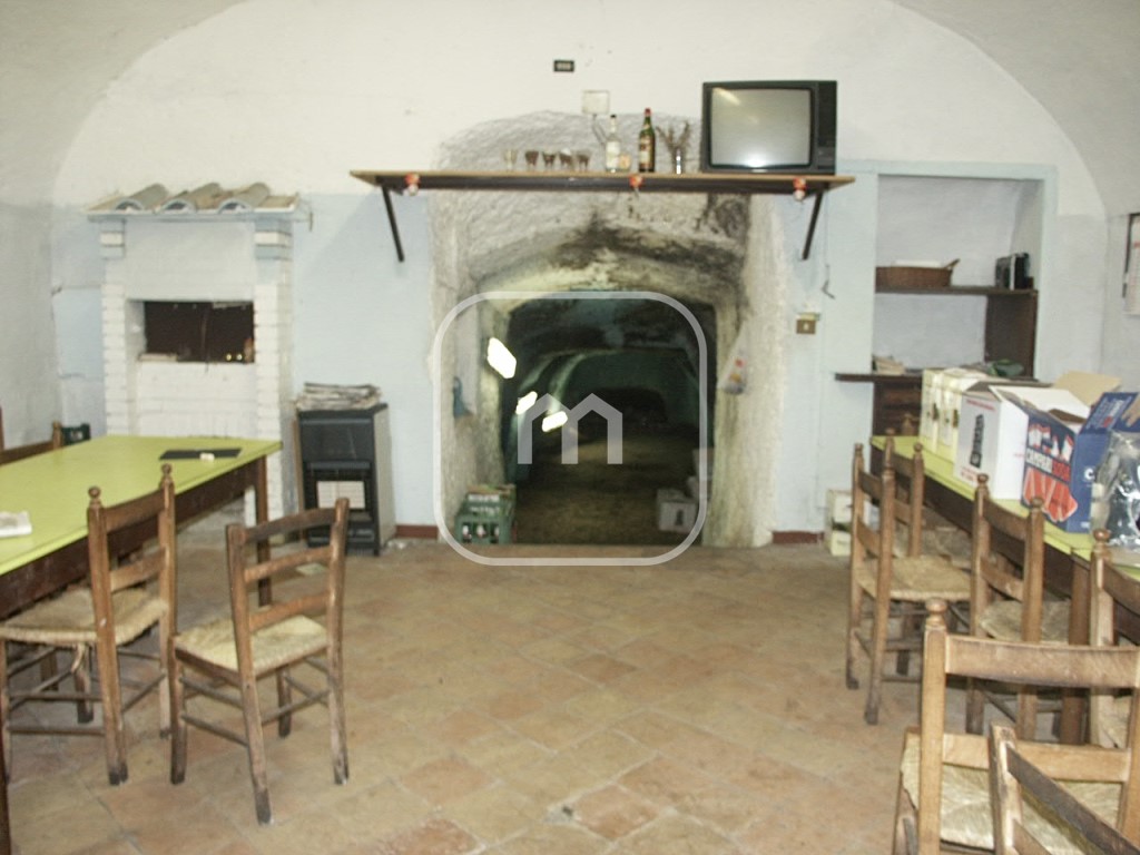 La Grotta Antica: Collegata direttamente alla sala tramite un suggestivo arco in pietra, si sviluppa una profonda grotta scavata nel tufo. Uno spazio naturalmente climatizzato, perfetto come cantina per vini pregiati o deposito. Il locale ha quel sapore di una volta che oggi è difficilissimo da replicare. È lo spazio perfetto per chi sogna di riaprire una locanda tipica, un wine-bar di nicchia o un laboratorio artigianale con esposizione.