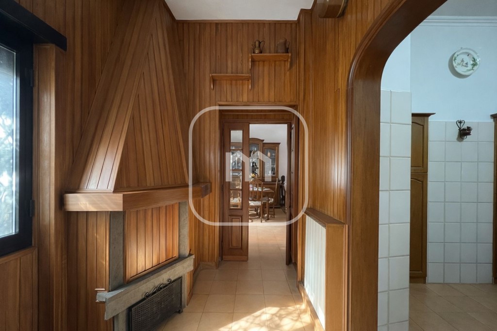 Tinello rivestito in legno con camino